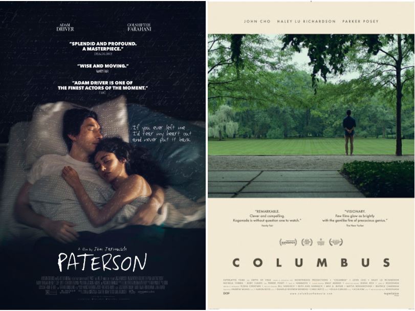 Last night, I didn’t see Chicago, or Philadelphia. I didn’t see Cedar Rapids, or – god forbid – Elizabethtown. The two eponymous US cities are Columbus and Paterson, and both films are fascinating. Neither is perfect; so rarely is it that a movie captures exactly what both the filmmaker and the spectator wish to see, yet both films exude a warmth, a sad ease that makes them easy to watch and difficult to conceptualize. Columbus, directed by Kogonada, is a poignant, mundane narrative following a recent high school graduate, Casey (Haley Lu Richardson), and a Korean man, Jin (John Cho), as their lives bleed into the grey concrete skies of the city they’ve found themselves in. Paterson is a serene book of poetry plastered onto a screen; we watch Paterson (Adam Driver) and his wife Laura (Golshifteh Farahani) go about their daily experiences, be they ordinary or extraordinary. These films are spiritually connected, and it’s a mere coincidence that I watched them back to back. In all honesty, I didn’t even know Paterson was a city in New Jersey until the film made it apparent. I would like to travel through these two cities, these two films, contrasting their themes and presentation. It’s not necessary for you to have seen the two films, but it will help to appreciate the analysis.
